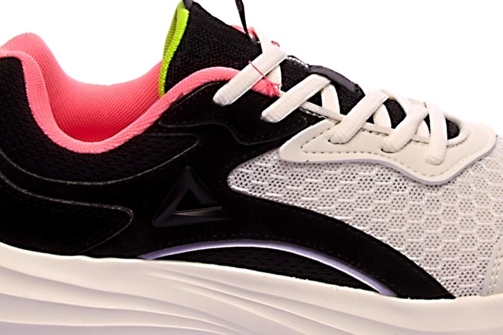Dámská rekreační běžecká obuv značky Peak. Tato obuv je vyrobena z lehkých, příjemných a kvalitních materiálů pro pohodlně nošení. Svršek obuvi tvoří prodyšný textilní materiál s prvky ze syntetické kůže, který spolu s optimálním tlumením podrážky zaručuje komfortní a pohodlný běh. Na jazyku a v oblasti paty má obuv zakomponovaná poutka pro snadnější nazouvání.
