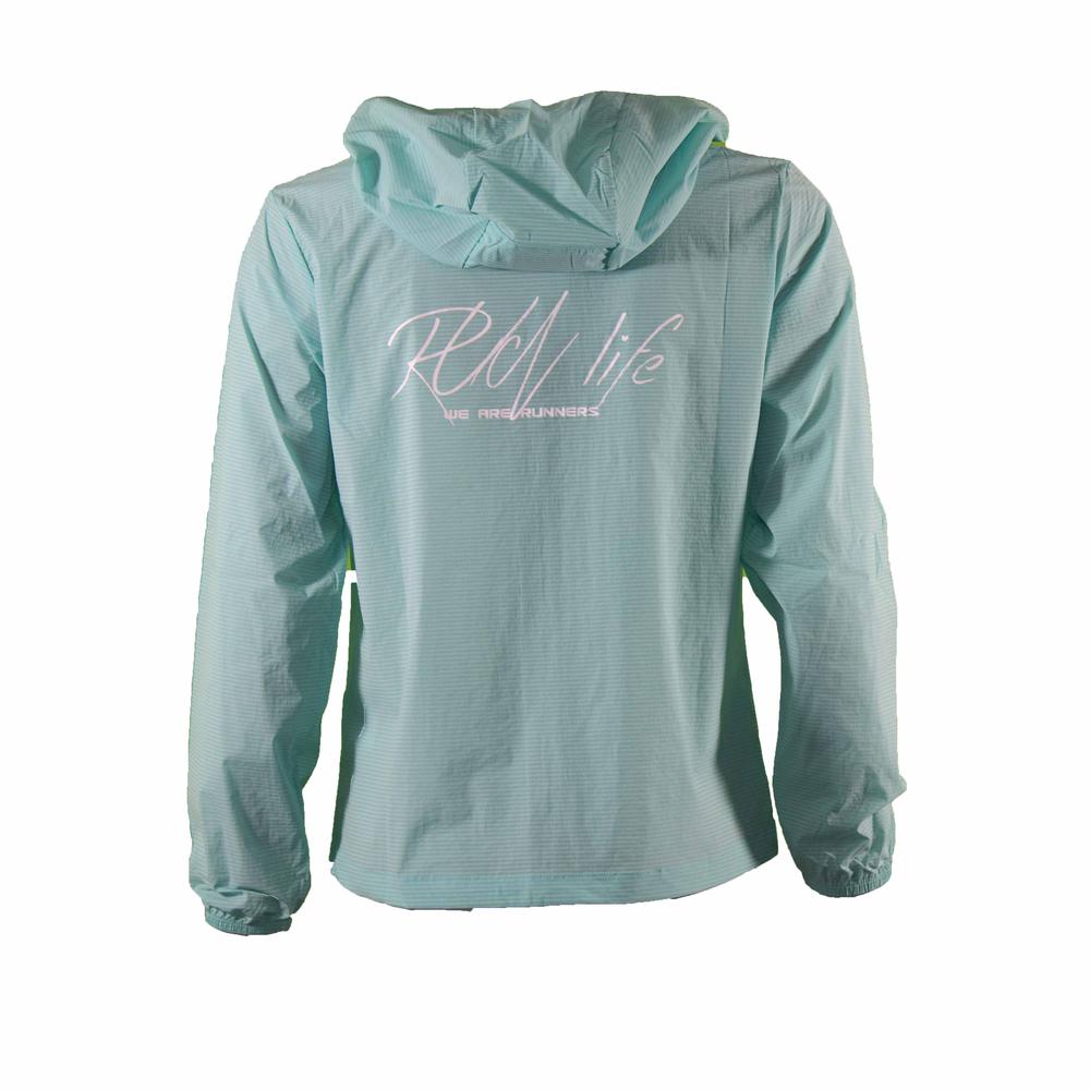 Příjemná lehká dámská bunda značky Peak s kapucí. Bunda má zapínání na zip a 2 kapsy, které mají taktéž zapínání na zip. Na zádech je stylový nápis "Run Life we are runners" a v přední části bundy u ramen jsou malé reflexní prvky.